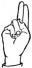 На ћирилици написано САЊА КАЗИМИРОВИЋ састоји се из 15 слова [?]. Исписано ћириличном једноручном азбуком за глувонеме: